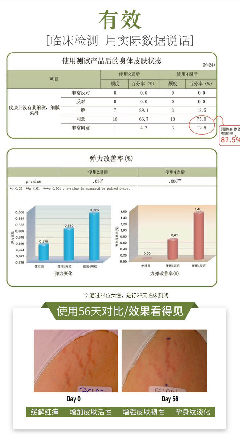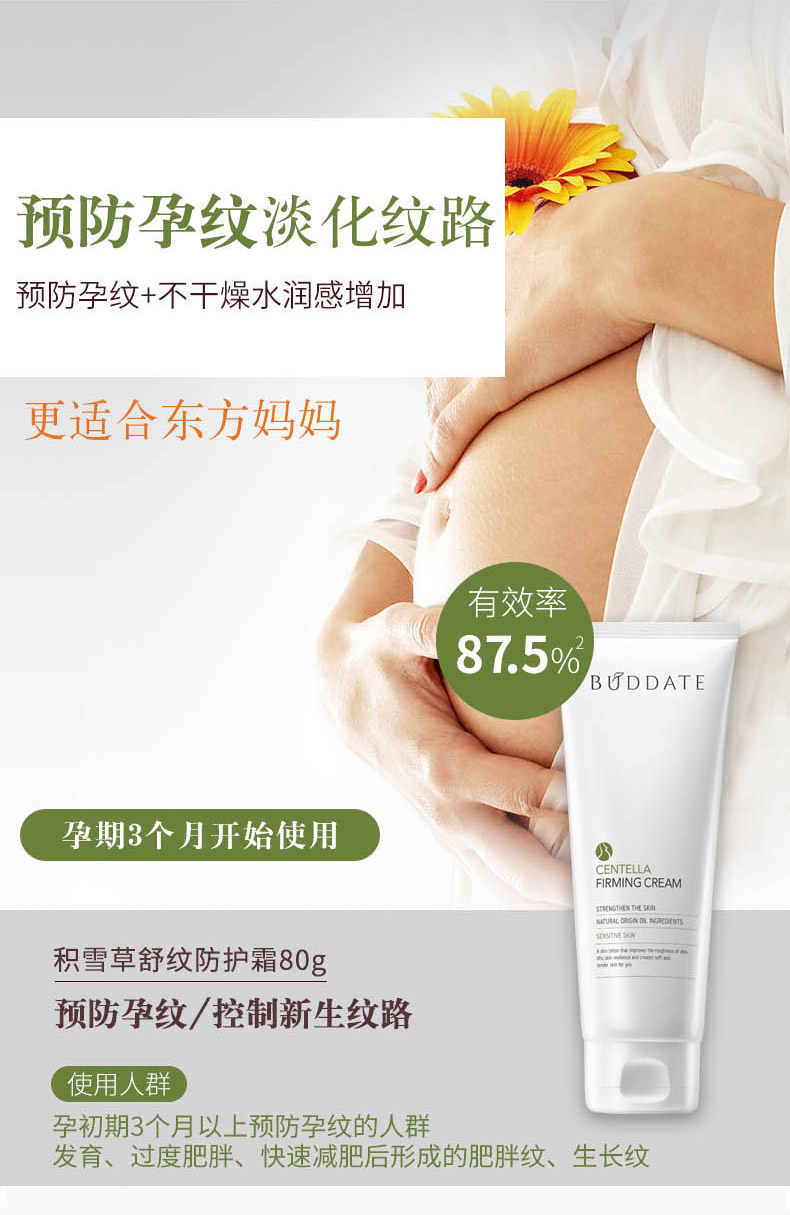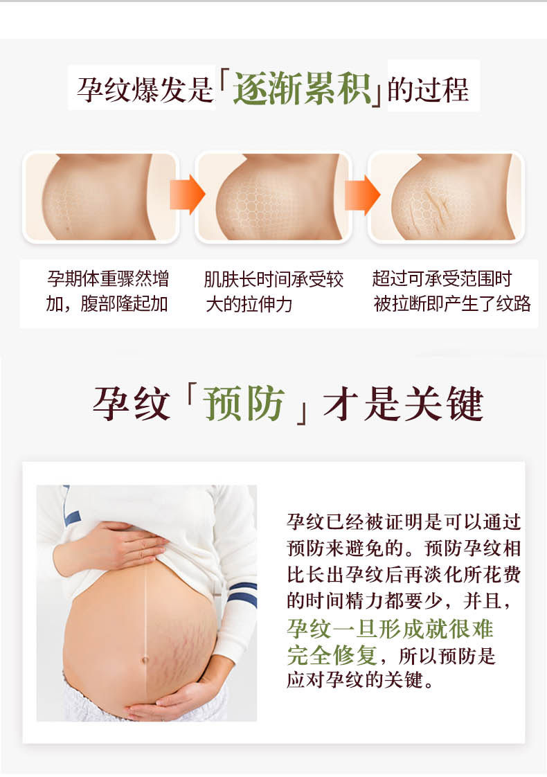 闺蜜推荐的牌子不错,她长纹了所以买的修护霜,我现在还没有长纹,所以买的这个预防霜,我每天洗完澡就会涂一点,真的很润很舒服,现在还没有长纹,会一直涂下去直到宝宝出生,听说这个有效率挺高的,期待宝宝出生