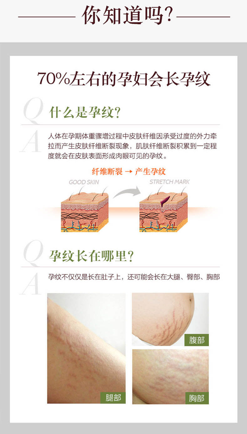 我大腿上有一点肥胖纹,前段时间用过他们家的那个修护霜之后感觉淡了一点点,所以感觉他们家对身体纹可能还是有一套的,正好现在准备再支修复霜的时候,客服小妹妹发现我是个孕妇,就推荐给我这个预防霜了,主要是涂肚子的,肚子在怀孕期可能长妊娠纹,所以预防下还是好的,怕出现像我大腿上的一样的纹,趁着肚子还不算特别大,还没开始长,先来预防一下