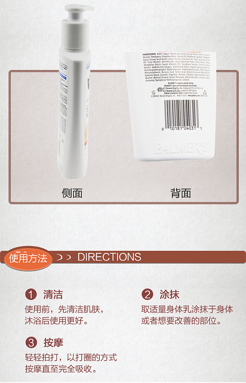 味道清淡,皮肤湿润的时候涂抹,很好推开,不油腻,没有出现搓泥的现象,很不错。